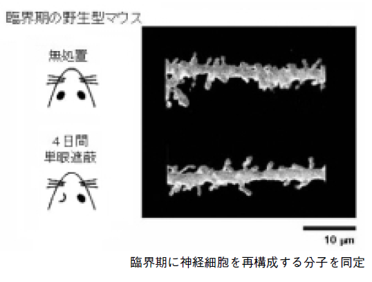 神経回路発達研究チーム(ヘンシュチームリーダー)は、マウスにおける左右眼の競合による活動依存性の可塑性の臨界期について研究し、大脳視覚の抑制性結合が重要な役割を果たすことを見いだした(Nature 2000年3月、Science 2004年3月)。また、レム睡眠やノンレム睡眠に際して脳内で発起したリズムは、視覚入力とは別の重要な大脳皮質入力であるとの観点から、睡眠状態の出現を可塑性の臨界期と関連づけた(Nature Neurosci. 2003年6月)。